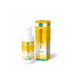 De Vetramil Spoelvloeistof is een vloeistof op basis van honing en propyleenglycol om wonden mee schoon te maken.